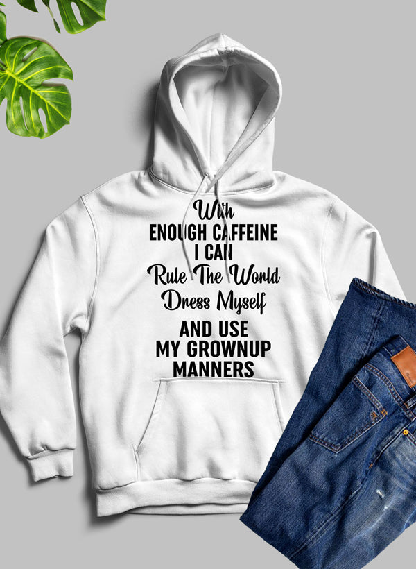 Indulge in the luxury of our With Enough Caffeine I Can Rule The World Hoodie digitally printed hoodie, meticulously crafted with heavy weight high-quality fleece for a warm and cozy experience. Proudly made in the USA, this hoodie showcases artistic designs that reflect your individuality and style. Elevate your wardrobe with our unique and eye-catching prints, perfect for any casual or outdoor occasion. The digitally printed graphics add a touch of creativity to your outfit, while the premium fabric ensures long-lasting comfort. Embrace the comfort and style of this With Enough Caffeine I Can Rule The World Hoodie hoodie, a perfect blend of fashion and functionality. Stay warm and trendy throughout the season with our With Enough Caffeine I Can Rule The World Hoodie.